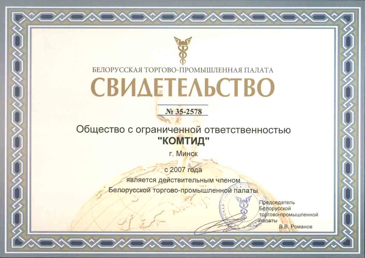 С 2007 года ООО «Комтид» является действительным членом Белорусской торгово-промышленной палаты.